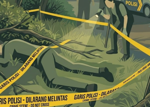 Petugas menemukan gulungan kabel di sekitar tubuh korban. Saat memeriksa sepeda motor yang terparkir di lokasi, polisi mendapati potongan kabel sejenis di dalam jok kendaraan.